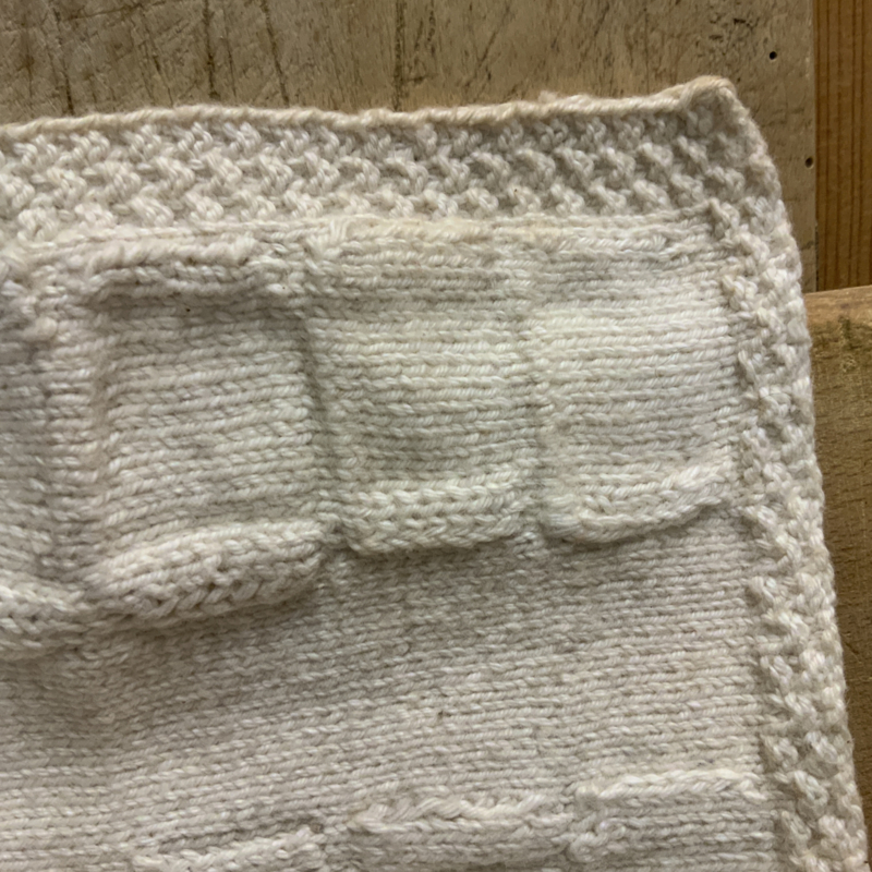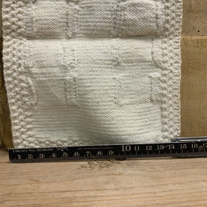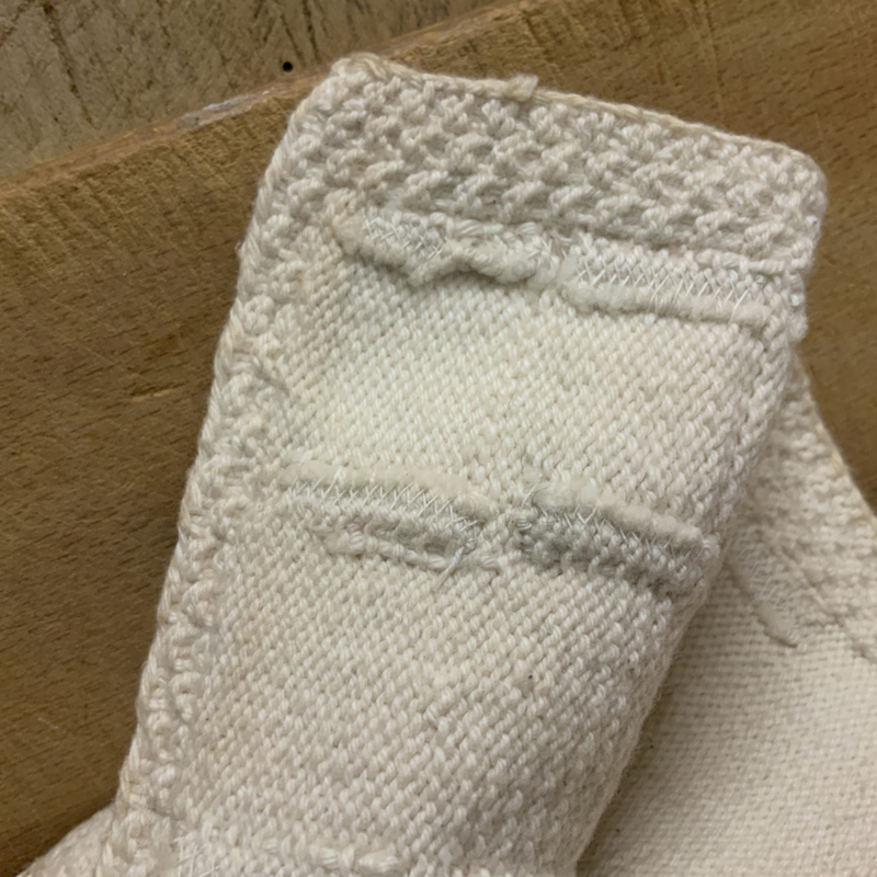 Een mooi lapje gemaakt door iemand ( waarschijnlijk een meisje) die moest leren inbreien.