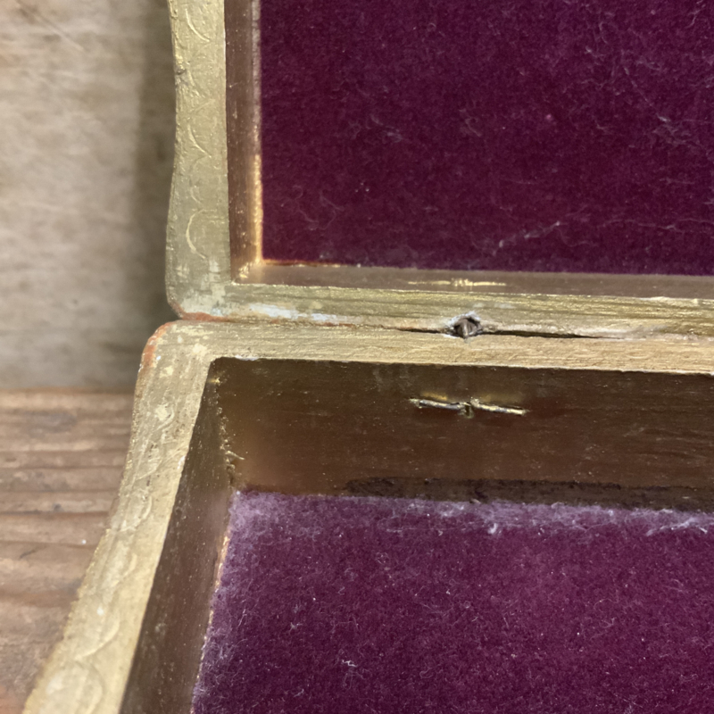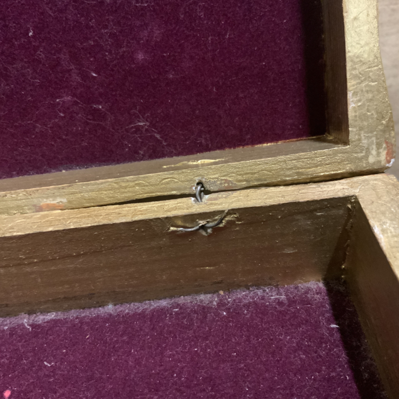 Het doosje is oud en heeft de daarbij behorende gebruikssporen. Maar ziet er voor zijn leeftijd heel goed uit.