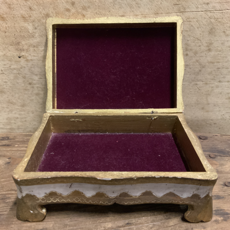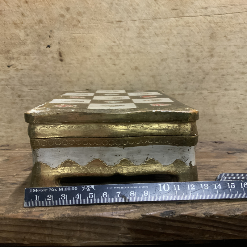 Een prachtig bewerkt Italiaans doosje. Gemaakt van heel licht hout.