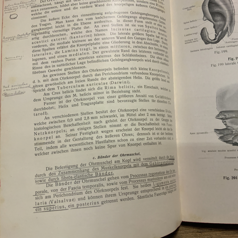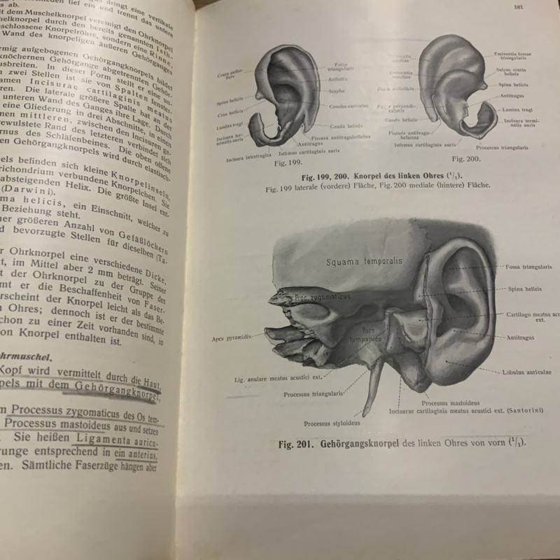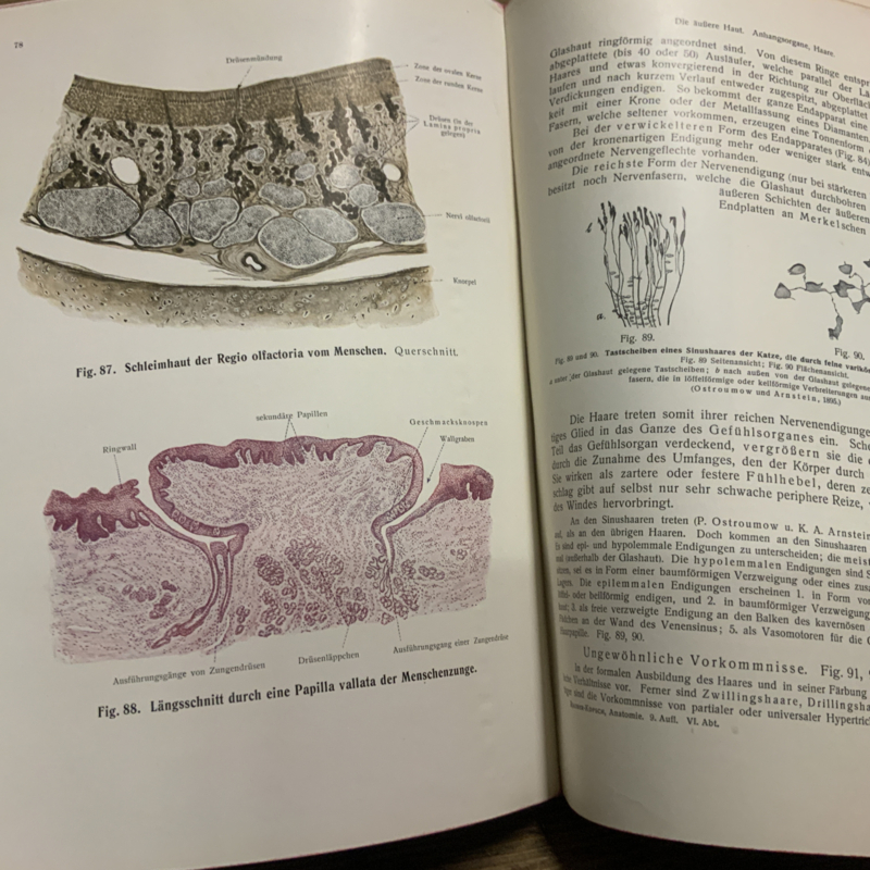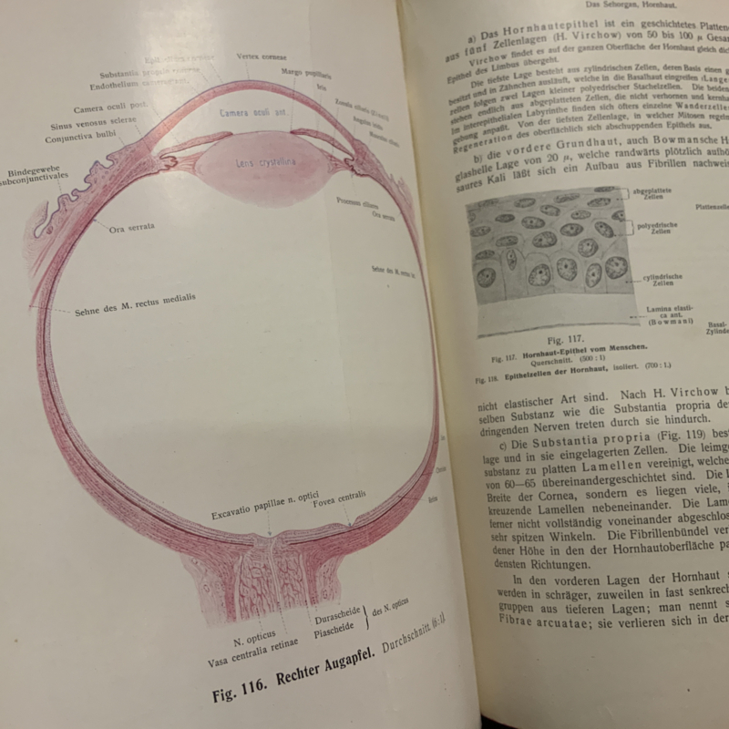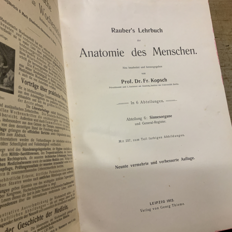 Een anatomie boek in het Duits. RAUBER KOPSCH LEHRBUCH DER ANATOMIE, deel 6. Over de zintuigen.