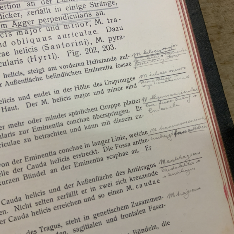 Met afbeeldingen in zwart wit en roze. Wat ik leuk vindt zijn de aantekeningen in de kantlijn van een student die dit alles bestudeerde.