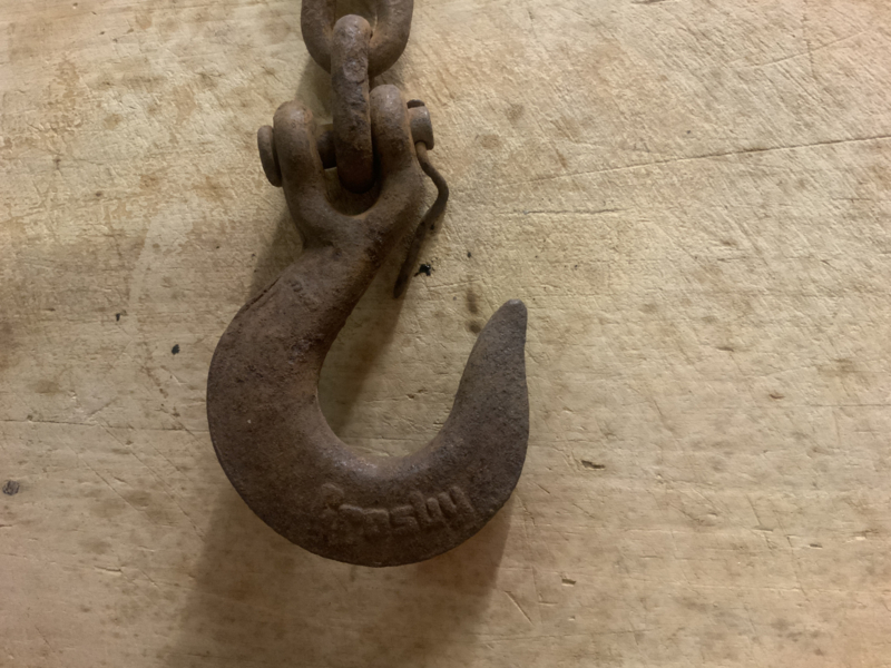 Een mooie zware CROSBY haak met een stukje ketting eraan.