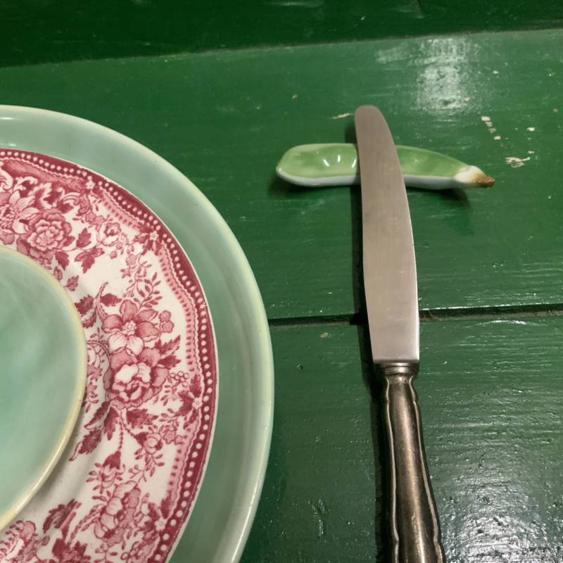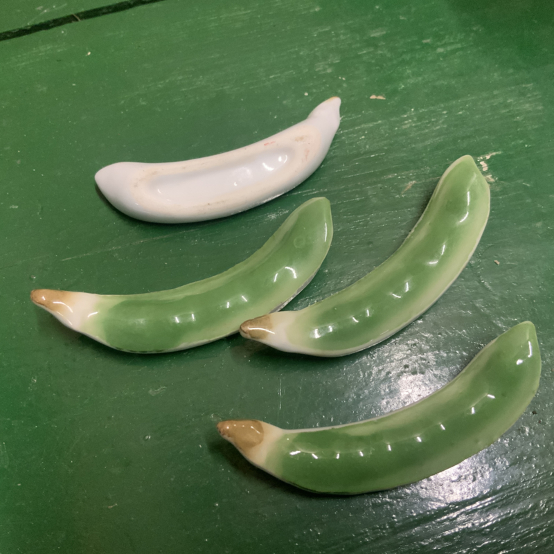 Boontjes van porselein om je mes op te leggen. Ik vond ze heel erg leuk.