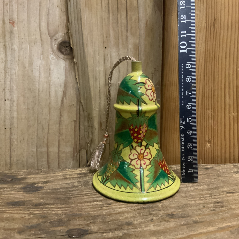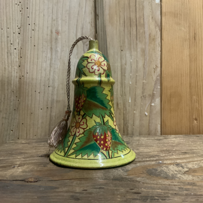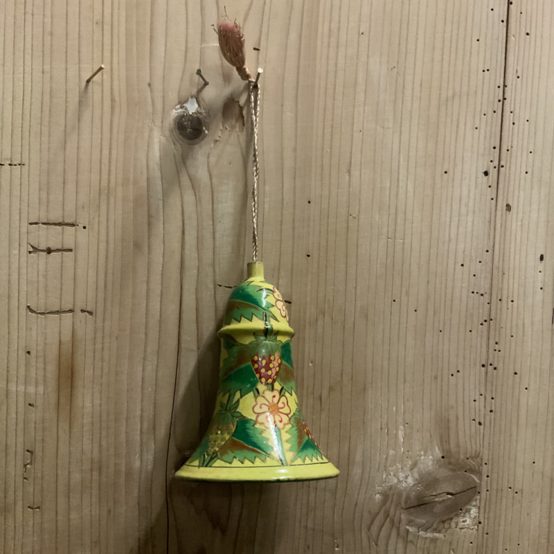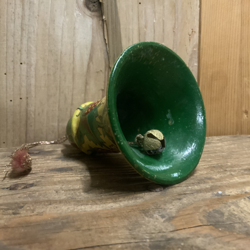Een kerstklokje gemaakt van papier maché, of van heel licht hout.