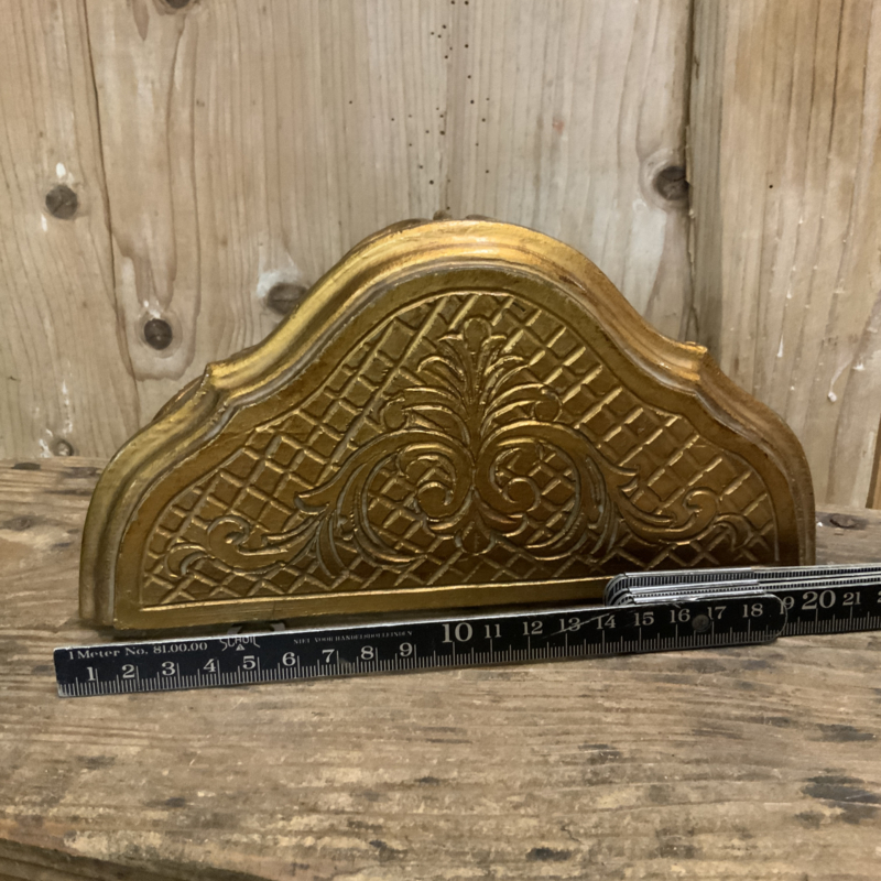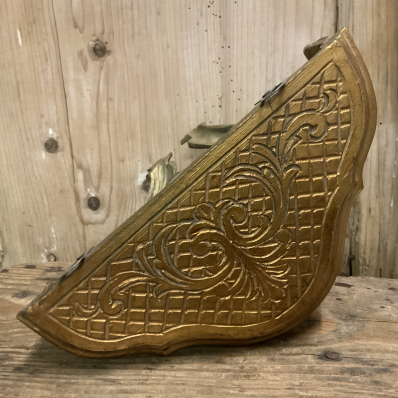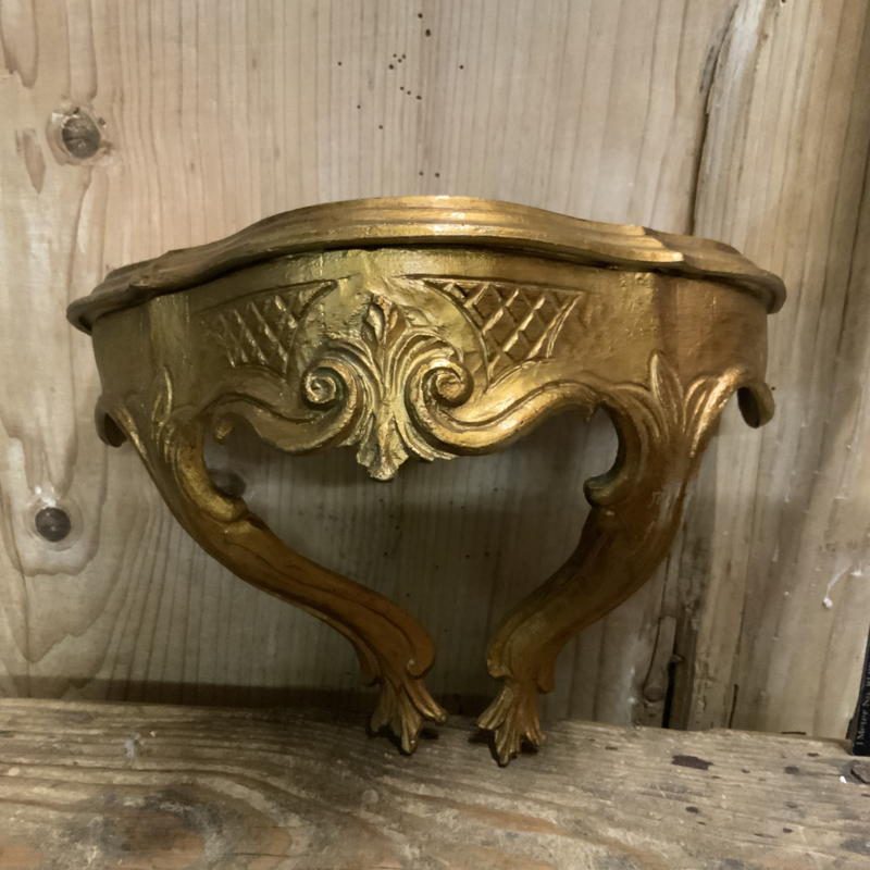 Een reproductie van een antieke console gemaakt van hars. Ikzelf vind hem heel decoratief. Mooi verguld. Leuk met een klein plantje, beeldje of iets erop.