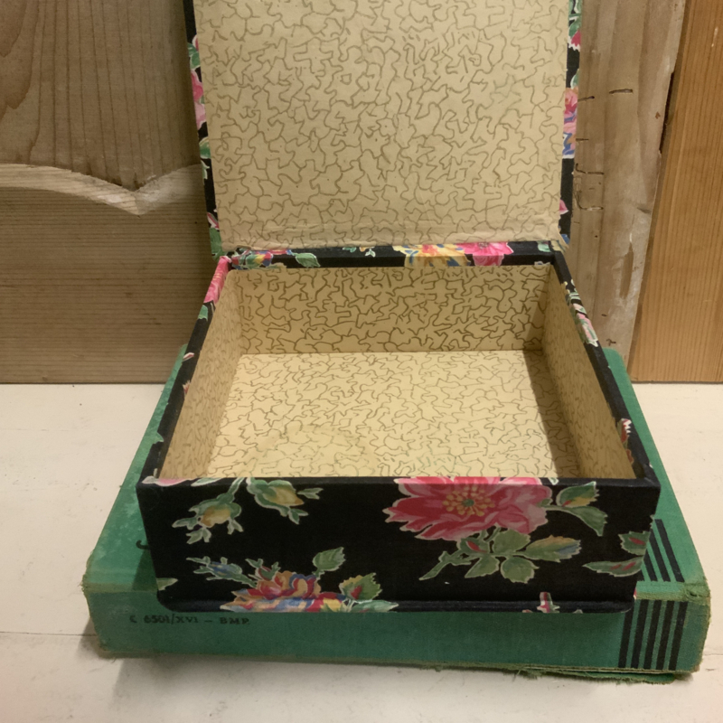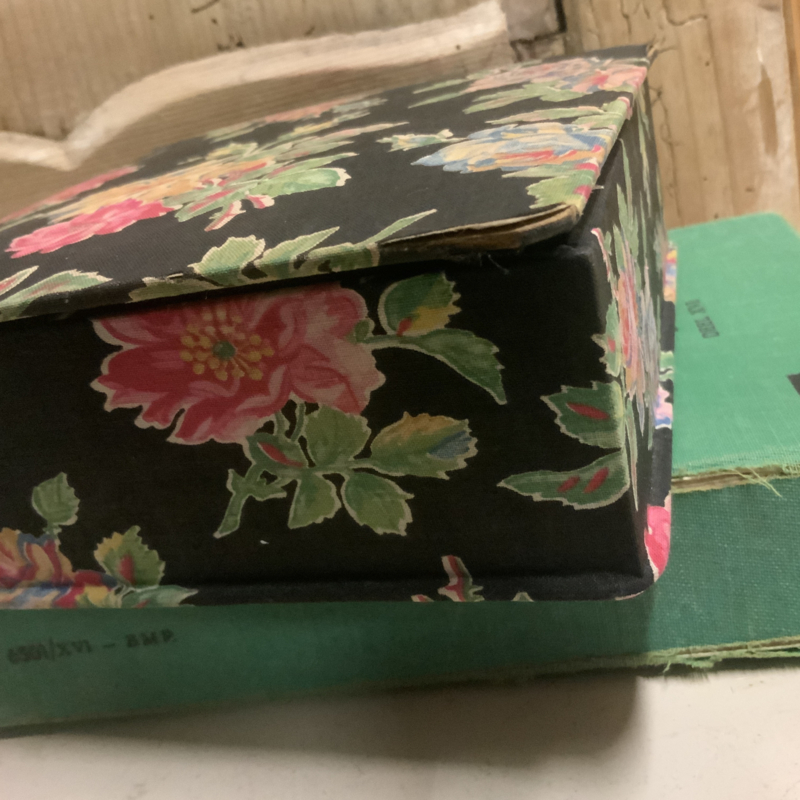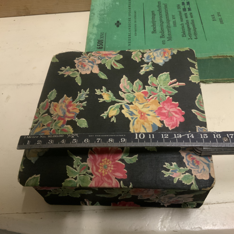 Een prachtige, sleetse doos. Gemaakt van stof, gevonden in Frankrijk.