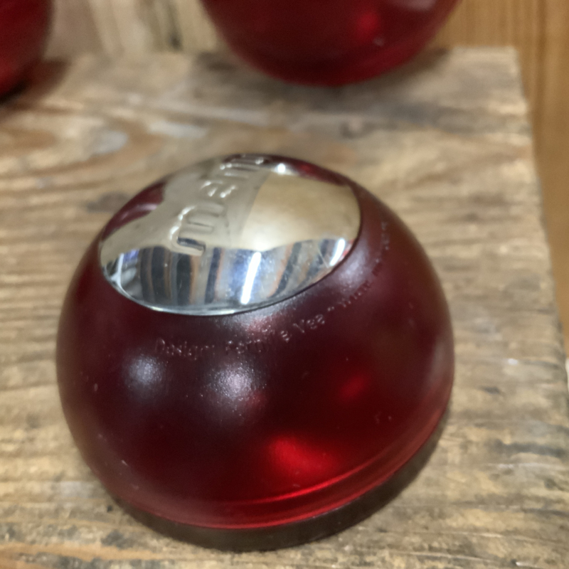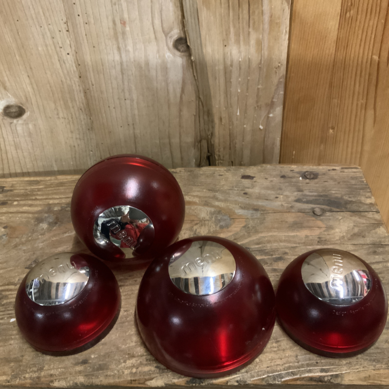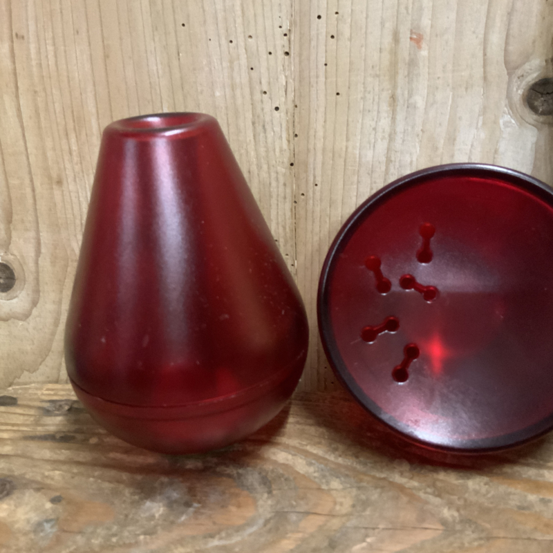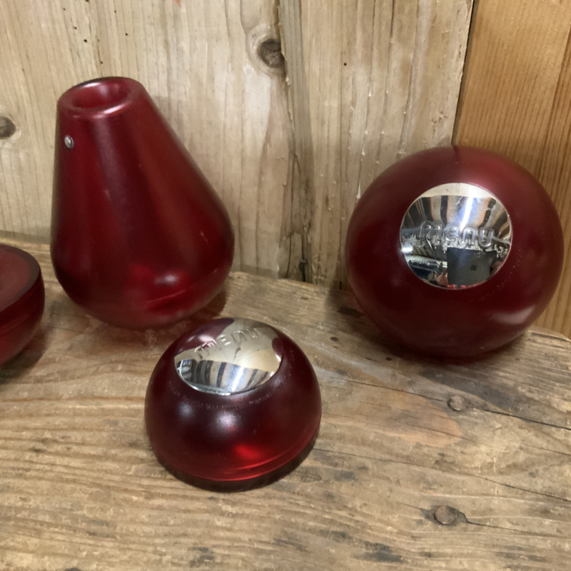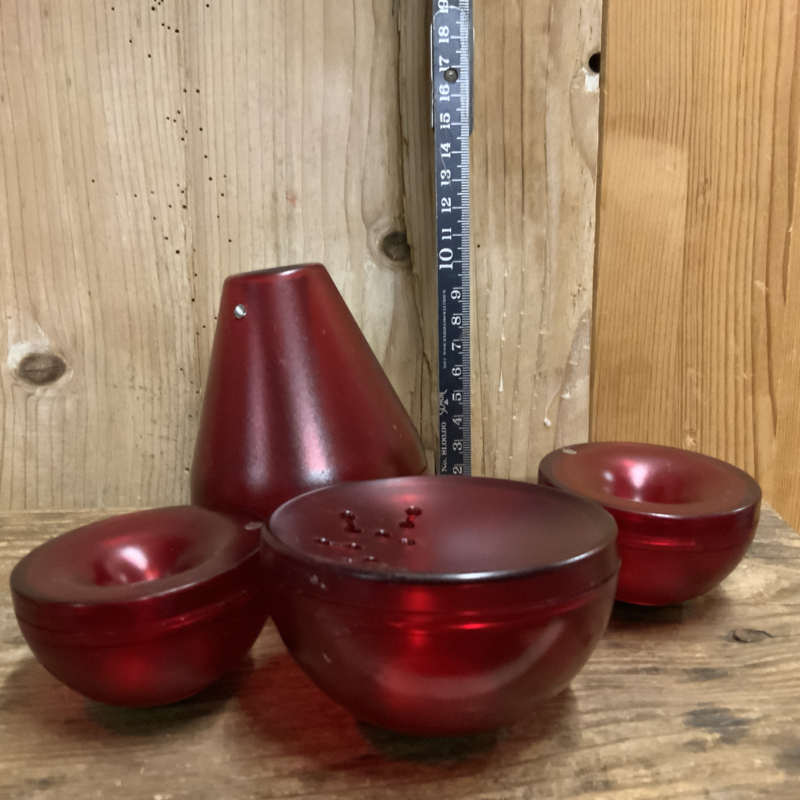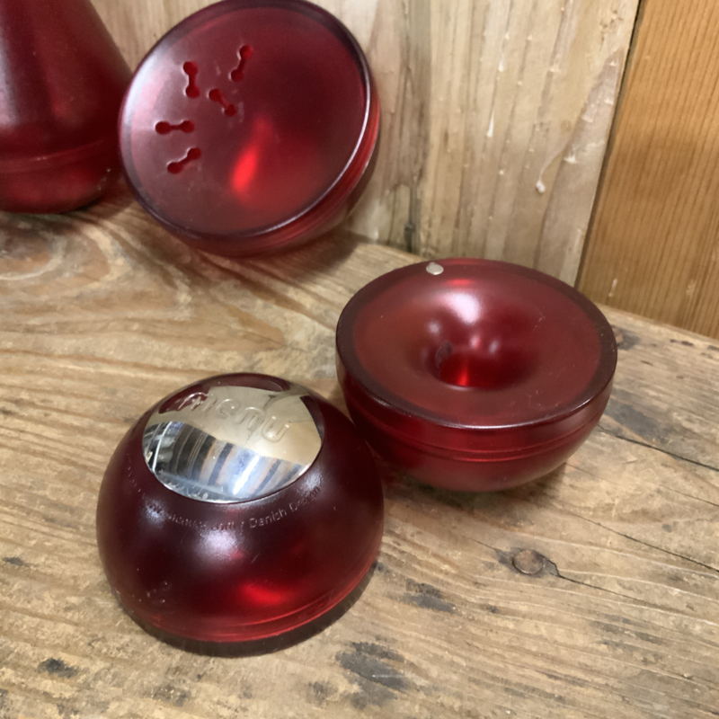 Deens design; een melkkannetje, suikerpot en peper- en zoutstel. Gemaakt van rood kunsstof.
