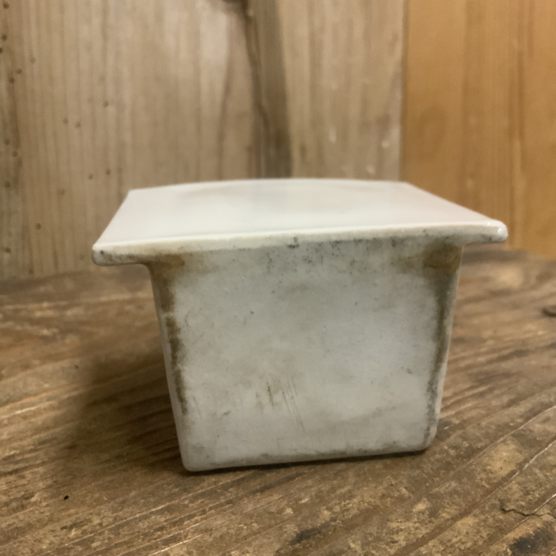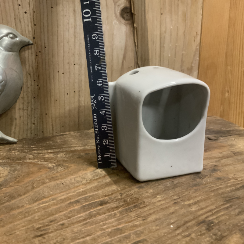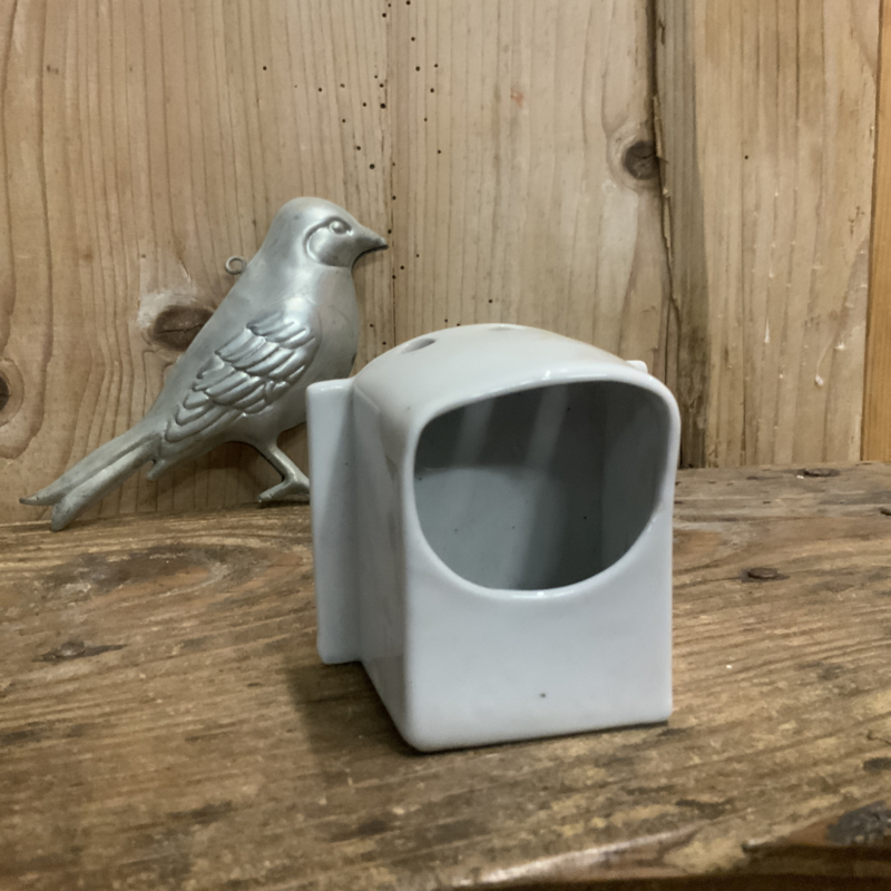 Een heel oud bakje van porselein voor in een kanariekooi. Of ter decoratie. Met een klein bloemetje misschien?