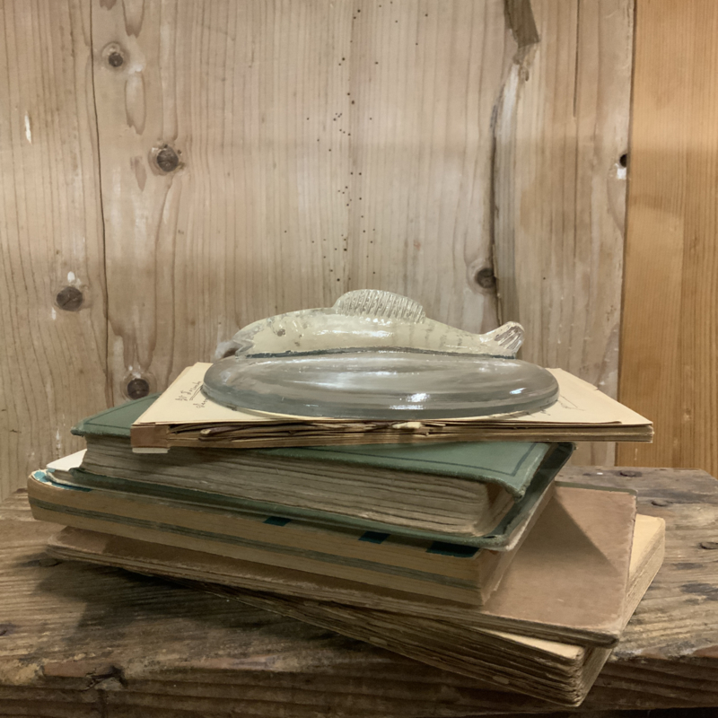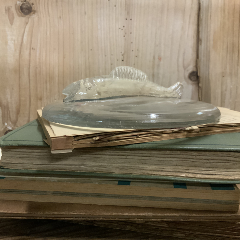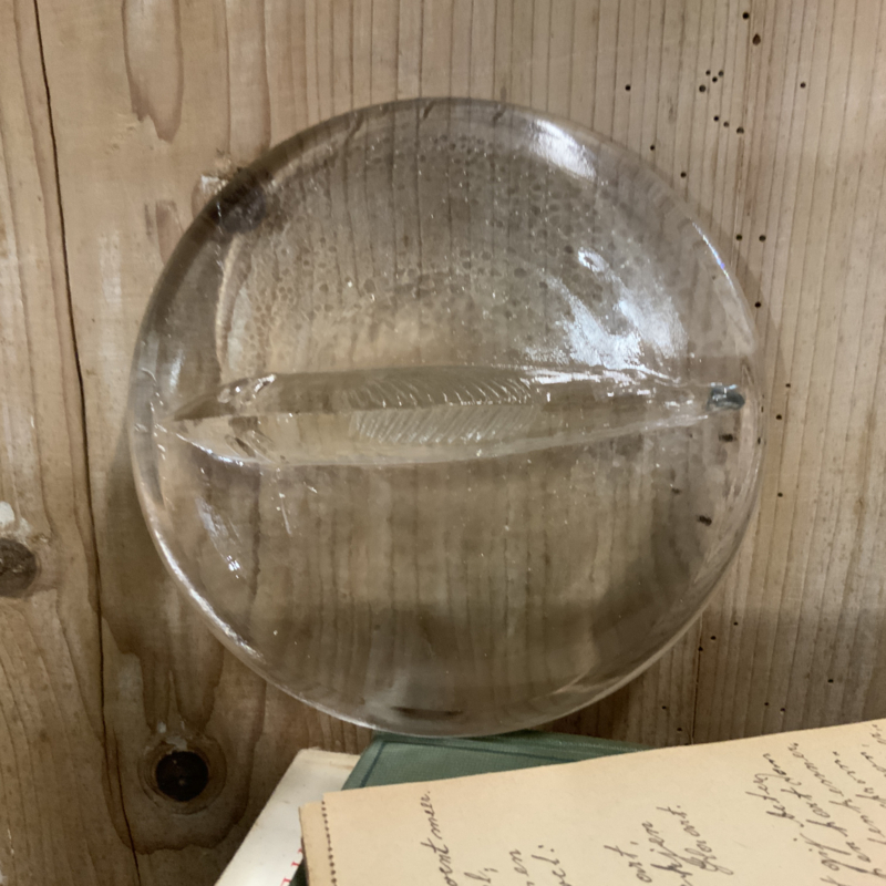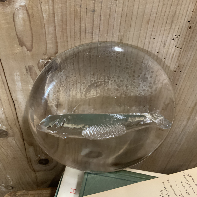 Een mooie vis van persglas. Prachtig om je stapeltje papieren in bedwang te houden