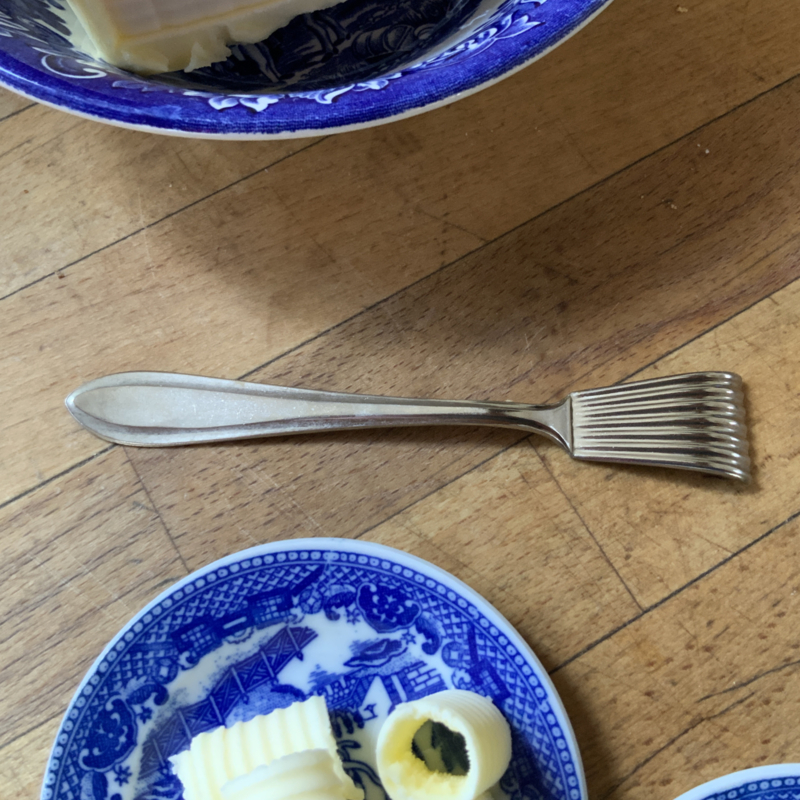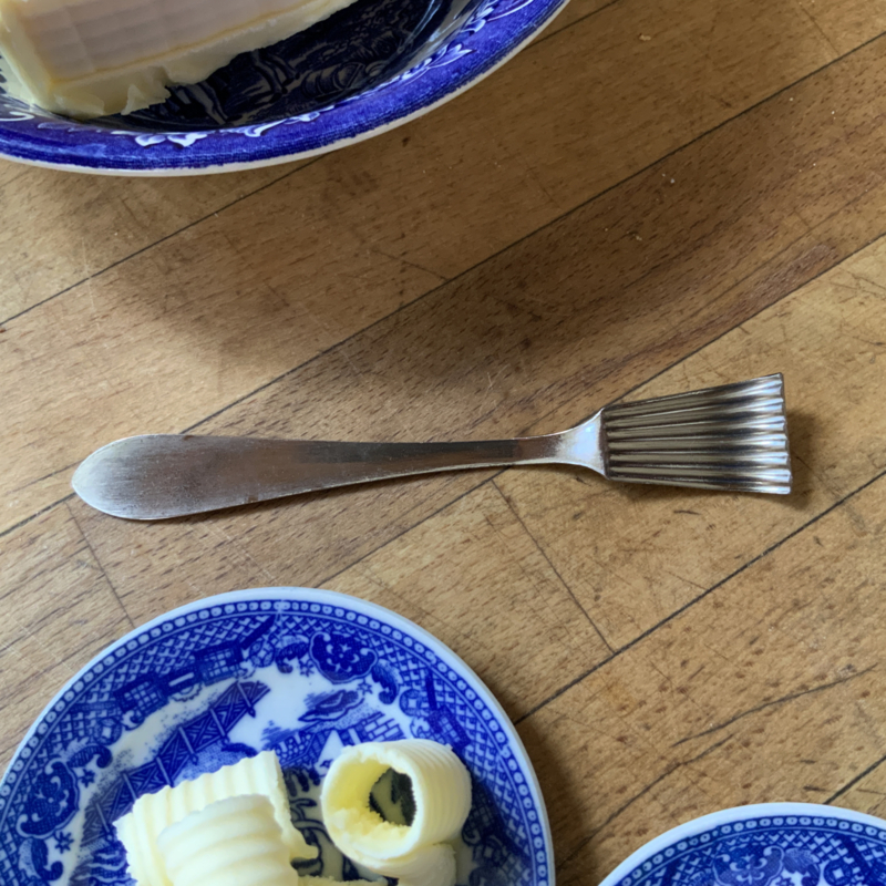 Een simpel botermesje maar zo leuk als je gasten hebt. Iedereen z'n eigen bordje met boterkrullen.
