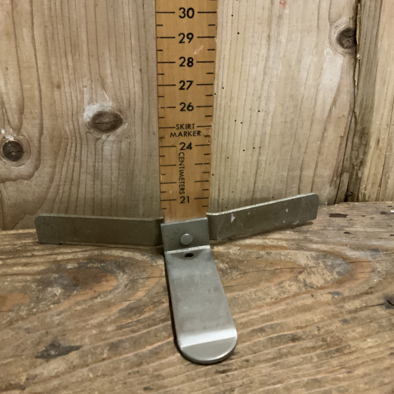 Als je ooit geprobeerd hebt om zo, uit de losse pols, een rok af te zomen weet je dat dat heel lastig is. Dit is de perfecte hulp. Stond vroeger standaard in een naaiatelier.