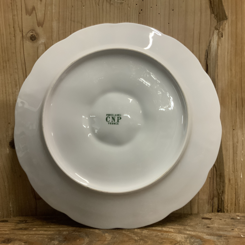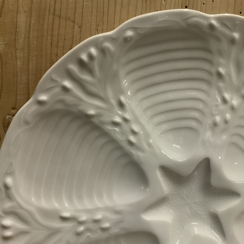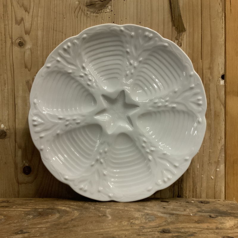 Mooie witte oesterborden uit Frankrijk. Gemaakt van porselein. Aan de onderkant gemerkt CNP France.